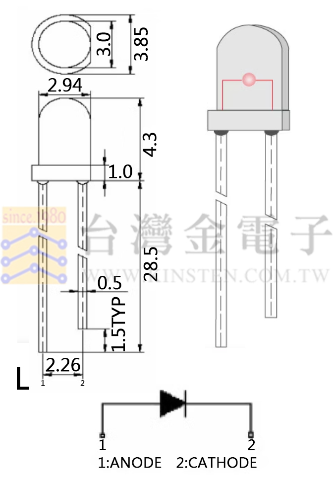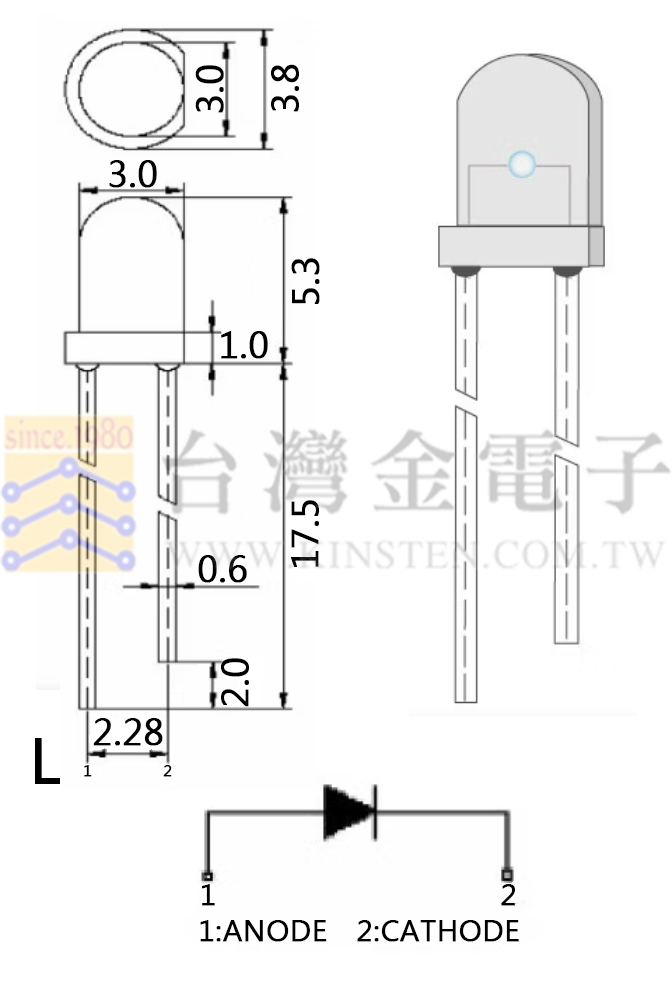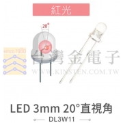 | 品名 | LED 3mm 紅光 20°直視角 透明膠面 |