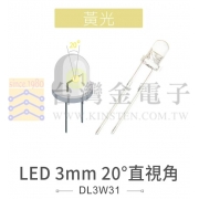 LED 3mm 黃光 20°直視角 透明膠面 |