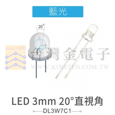 LED 3mm 藍光 20°直視角 透明膠面 |