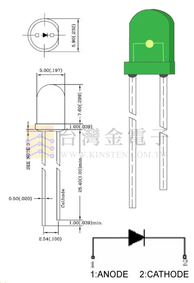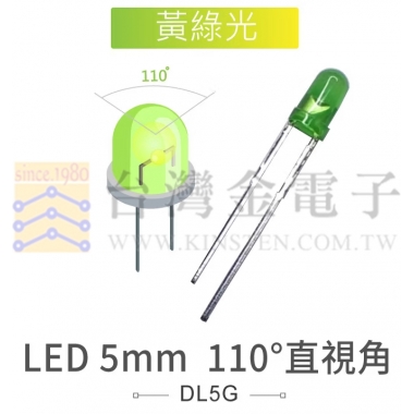 品名:LED 5mm 黃綠光 110°直視角 綠色膠面