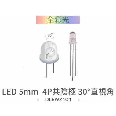 品名:LED 5mm 全彩光 4P 共陰極 30°直視角 透明膠面