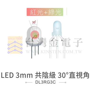 品名:LED 3mm 紅綠光 共陰級 30°直視角 透明膠面