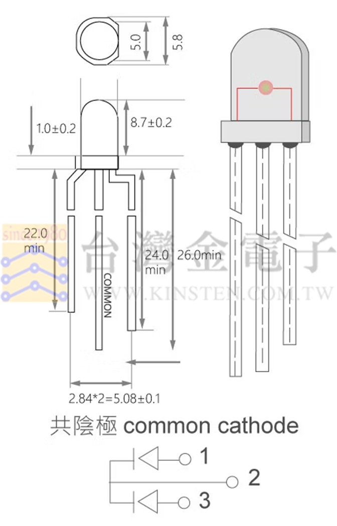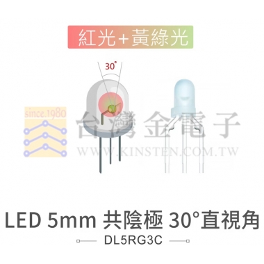 品名:LED 5mm 紅綠光 30°直視角 白霧膠面
