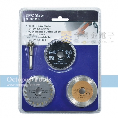 ◆ 此組帶柄圓鋸片包含3片不同種類之圓鋸片及1支6mm軸柄。