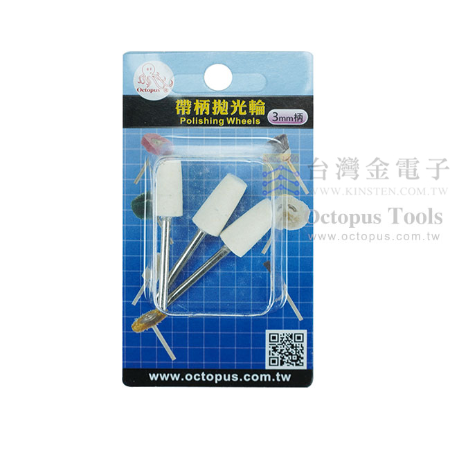 直徑:9mm 長度:18mm 柄徑:3mm 材質:毛氈 數量:3支/組 ◆ 可沾拋光劑拋光貴金屬、玉石、寶石、陶瓷等。 ◆ 使用迴轉速請勿高於10000rpm。 ◆ 另有 2.34mm 柄規格。
