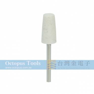 直徑:9mm 長度:18mm 柄徑:3mm 材質:毛氈 ◆ 可沾拋光劑拋光貴金屬、玉石、寶石、陶瓷等。 ◆ 使用迴轉速請勿高於10000rpm。 ◆ 另有 2.34mm 柄規格 (產品編號 956.279)。 硬質毛氈輪斜型3mm柄