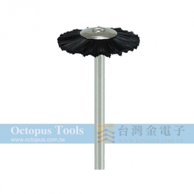 直徑:21mm 柄徑:3mm 材質:尼龍 ◆ 適用於飾品表面清潔,或清除拋光劑碎屑。 ◆ 使用迴轉速請勿高於10000rpm。 ◆ 另有 2.34mm 柄規格 (產品編號 956.283)。 黑絲平圓型輪刷3mm柄