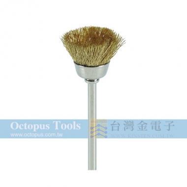 直徑:15mm 柄徑:3mm 材質:銅 ◆ 適用於貴金屬表面輕微去鏽清潔,或可使黃金、黃K金、金屬等飾品表面產生霧面效果。 ◆ 使用迴轉速請勿高於10000rpm。 ◆ 另有 2.34mm 柄規格 (產品編號 956.285)。 銅絲碗型輪刷3mm柄