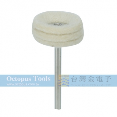 直徑:21mm 柄徑:3mm柄 ◆ 可沾拋光劑、拋光土拋光貴金屬、玉石、寶石、陶瓷、壓克力表面。 ◆ 使用迴轉速請勿高於10000rpm。 軟質毛氈輪多層 3mm柄