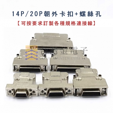 SCSI連接器 HPCN 14P/20P 朝外卡扣 螺絲孔 焊線母頭鐵殼